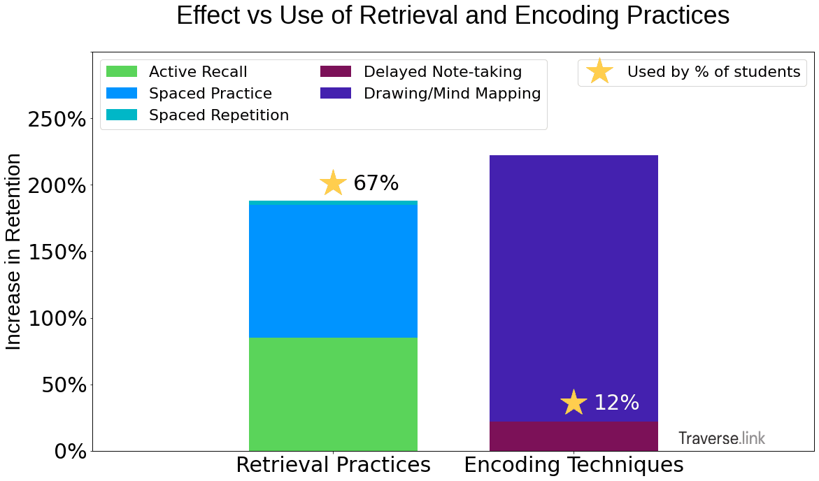 But when I looked at the stats, I found that many learners over-rely on spaced repetition. 67% of students use flashcards and spaced repetition. But less than 12% take the time to organize information first. And that is where big learning performance improvements can still be made: